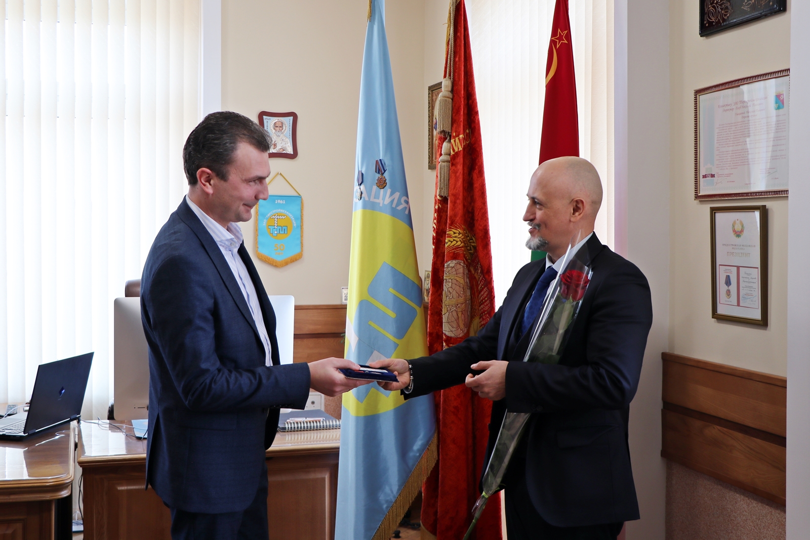 Главным подарком ко дню рождения от государства стал орден Почета. Высокую награду на знамя предприятия прикрепил Сергей Оболоник. Также из рук первого вице-премьера – министра экономического развития лучшие работники за многолетний труд получили заслуженные ордена и медали. Руководитель компании удостоен нагрудного знака «За заслуги перед обществом» II степени.